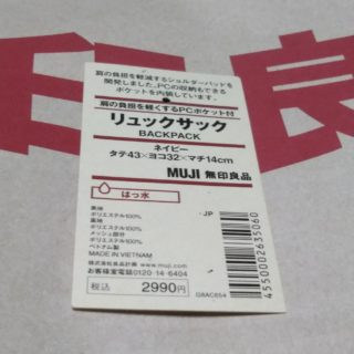 噂の無印良品 PCポケット付リュック 買ってみた。