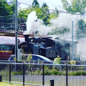 初めて見るの動いてるSL。(公園なんかに静態保存しているのとか、名古屋のリニア・鉄道館などに置いてあるのは見たことある。)